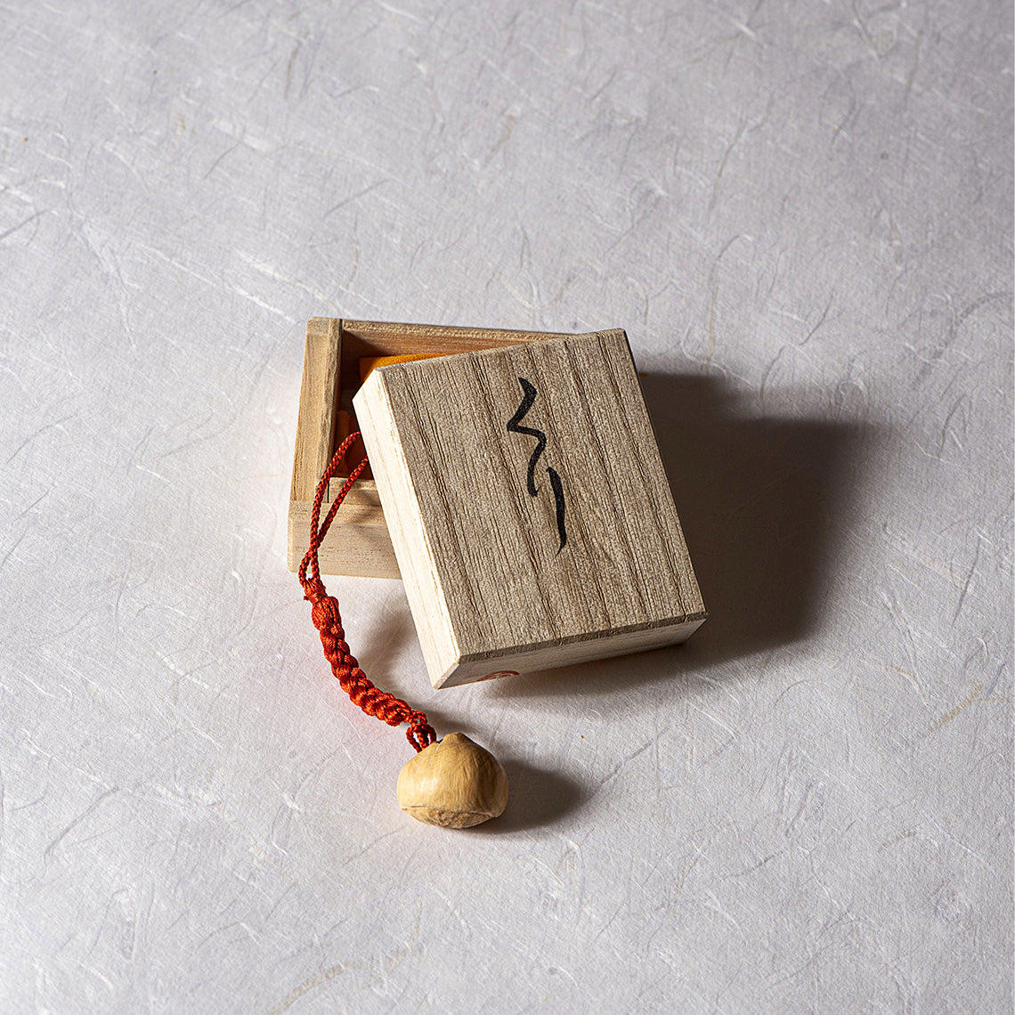 Hand-carved from fine boxwood, this netsuke portrays a chestnut with meticulous detail. Netsuke, once used to fasten items to a kimono’s sash, are now cherished as refined, collectible miniature artworks that celebrate the elegance of Japanese craftsmanship.
