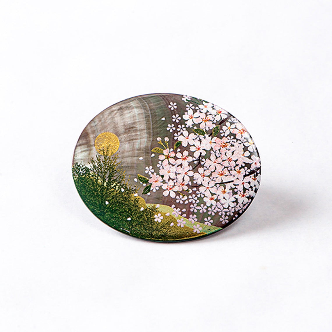 A blossoming sakura tree against a silver-toned background is elevated to timeless elegance with Modern Makie. Tradition and modern refinement blend seamlessly, creating new lacquer crafts with mother of South Sea Pearl.